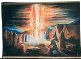 Облако окутывало весь стан. Внутри него был особый микроклимат, отличавшийся от климата вокруг. Более того, эти облака освещали, как днём, так и ночью. Днем облачный столб шел перед станом, а ночью столб огня. У них была масса чудесных свойств. Они очищали одежду, вроде химчистки. А еще от них исходило некое излучение, похожее на рентгеновское, так что люди могли видеть содержимое закрытых сосудов или внутренности животных.